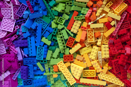 © Tatsiana, Obraz premium Pile of child's building blocks in multiple colours
