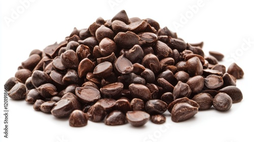 Fototapeta premium Pile of Dark Chocolate Chips on White Background for Baking Use