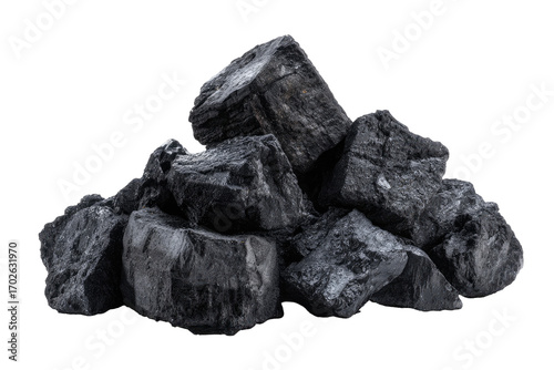 © straight, Obraz premium Pile of dark gray charcoal briquettes