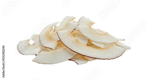 © ArsiStudio, Fototapeta premium Pile of Dried Coconut Chips or Flakes Isolated on White Background