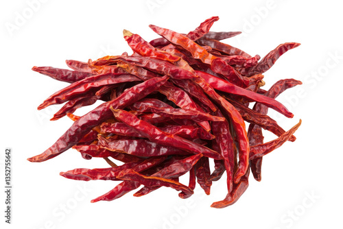 © eclipse, Fototapeta premium Pile of dried red chili peppers on black background, cut out