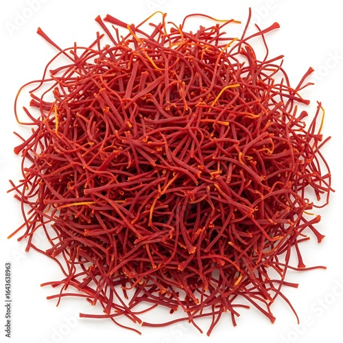 © Rahela, Naklejka premium Pile of dried red saffron threads, isolated on white background
