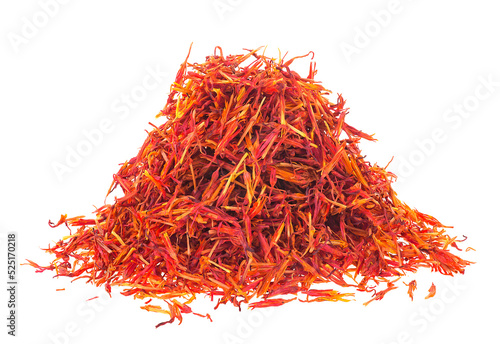 Fototapeta premium Pile of dried saffron spice isolated on a white background