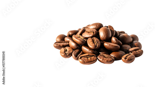 © Meheraj Hosen Mahid, Naklejka premium Pile of Freshly Roasted Coffee Beans on White Background in Studio Lighting.