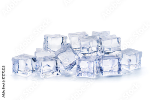 © surasak, Obraz premium Pile of ice cubes isolated on white background, Artificial acrylic ice cubes