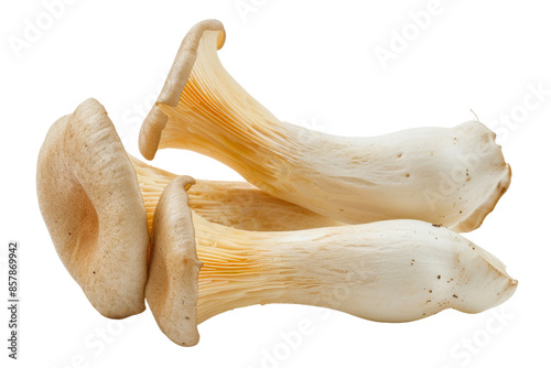 © TANATPON, Fototapeta premium Pile of King Oyster or trumpet Mushroom isolated on background, fungi with high nutrients and protein.