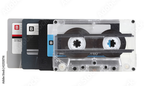 © KonstantinPetkov, Obraz premium pile of old tapes isolated on white with clipping path
