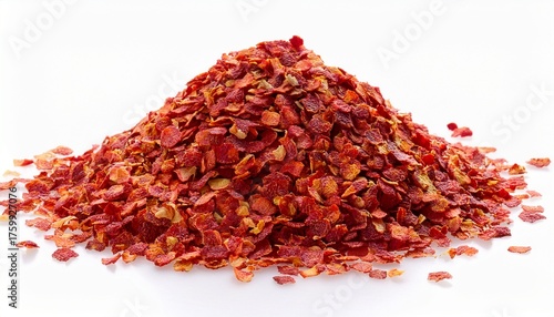 © Arber, Naklejka premium Pile Of Red Pepper Flakes On A White Background