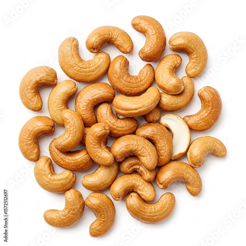 © Viktoriia, Obraz premium Pile of roasted cashews isolated on a white