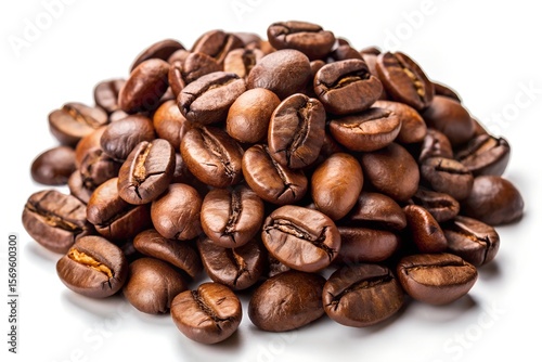© MdIskandar, Naklejka premium Pile of roasted coffee beans isolated on white background