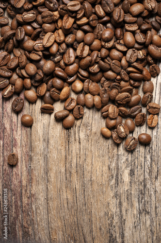© Svetlana Lukienko, Naklejka premium Pile of roasted coffee beans on wood