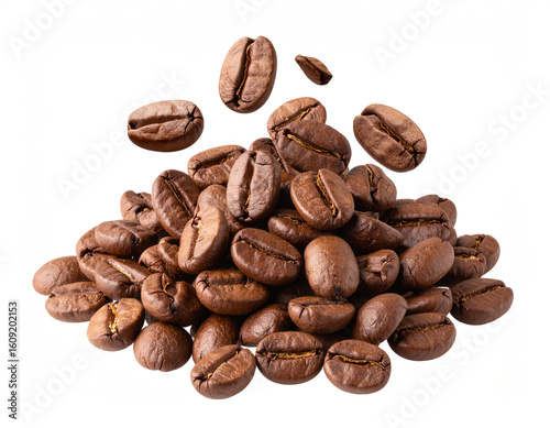 © Abhi, Naklejka premium Pile of roasted coffee beans scattered,isolated on white PNG