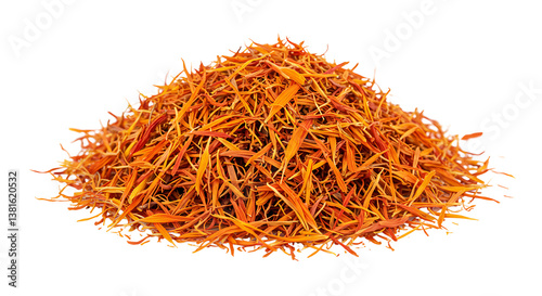 Naklejka premium Pile of Saffron Threads Close Up on White Background Cooking Ingredient