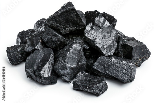 © El Media, Obraz premium Pile of Shiny Black Anthracite Coal Pieces Isolated on White Background