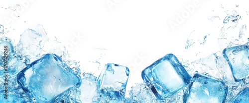 Obraz premium Pile of translucent ice cubes with water droplets isolated on transparent...