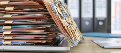 © Fana Art, Obraz premium Pile of unfinished documents on office desk.