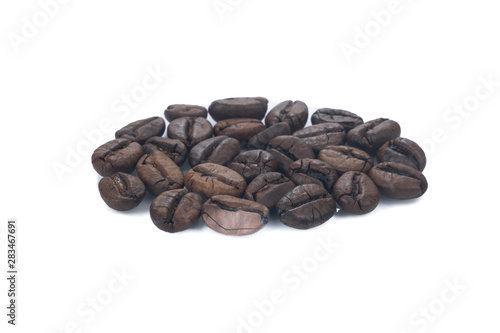 Fototapeta premium Pile Roasted brown coffee beans isolated on white background.close up