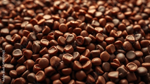 Fototapeta premium Piles of dark chocolate morsels create a tempting display, ideal for various...