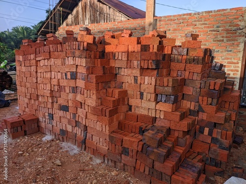 © RMX IMG, Obraz premium piles of red bricks for building materials for houses
