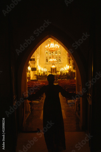 Naklejka premium Pilgrim at the an Old Anglican Church