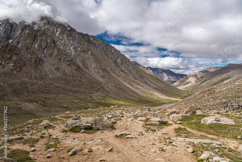 Fototapeta premium Pilgrims walking during the journey around Mount Kailash