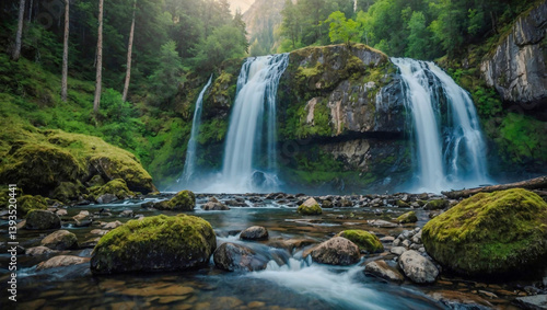 © claudunia, Obraz premium Pilj Waterfall cascading from rocks in a mountain forest