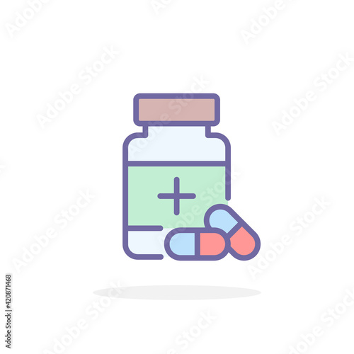 Fototapeta premium Pills bottle icon in filled outline style.