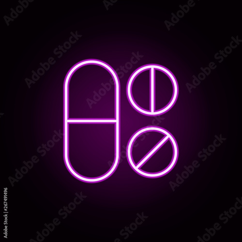 © Jamila, Obraz premium Pills neon icon. Elements of medical set. Simple icon for websites, web design, mobile app, info graphics