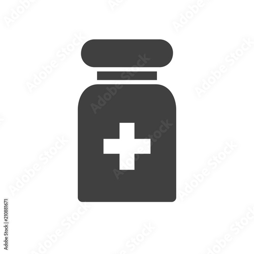 © A Oleksii, Obraz premium Pills Tube Glyph Related Vector Icon. Isolated on the White Background. Editable EPS file. Related Vector illustration.