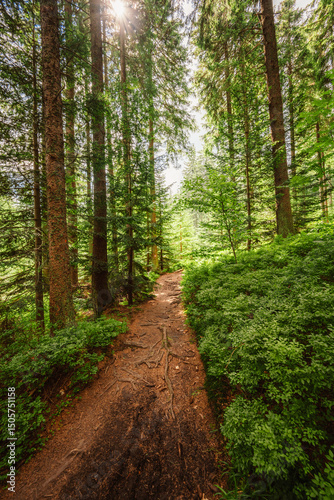 © Zedspider, Obraz premium Pilsko Ski Resort, located on the border of Slovakia and Poland, offering scenic tourist trail on Pilsko Mountain in the Beskids, Poland