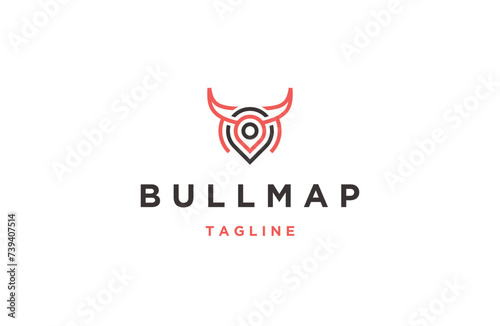 Obraz premium Pin and bull head logo design template