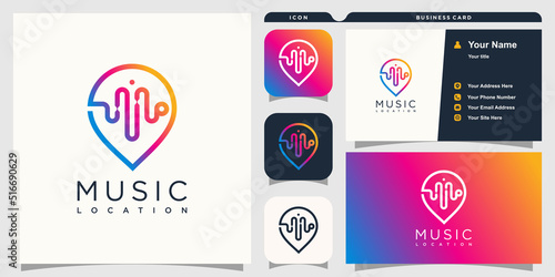 Fototapeta premium Pin logo with music design concept Premium Vector