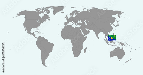 © Ruslan, Naklejka premium Pin map with Christmas Island flag on world map. Vector illustration.