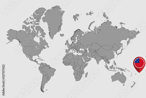 © Ruslan, Naklejka premium Pin map with Samoa flag on world map. Vector illustration.