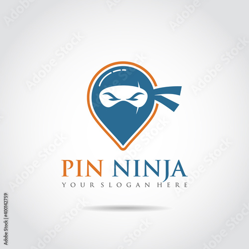 Naklejka premium Pin Ninja Logo Template. Pin Map and icon ninja concept. Vector Illustrator eps.10