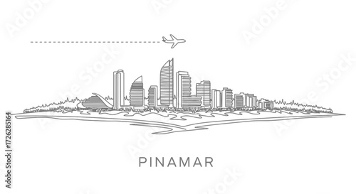 Fototapeta premium Pinamar Argentina Skyline with Airplane and Coastline