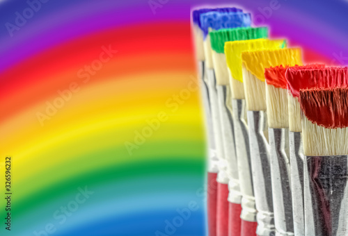© Unclesam, Obraz premium pinceaux sur fond arc-en-ciel