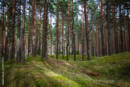 Obraz premium Pine and coniferous forest in Latvia with moss