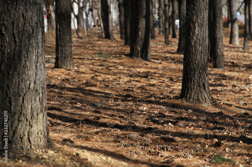 © redrabbit007, Obraz premium Pine and pine. Lay on the floor in the fall.