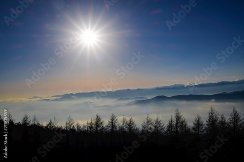 © Thotsaporn, Fototapeta premium Pine and Sky During the trip to Mount Fuji.
