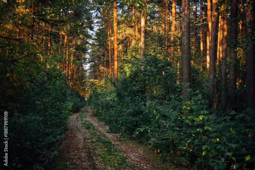 © Inga, Fototapeta premium Pine autumn forest, forest road