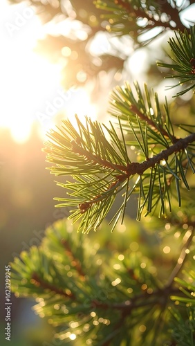 © Domba, Fototapeta premium Pine branch in sunlight