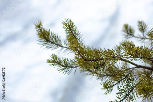 © Natalia, Obraz premium pine branch on a light background in winter