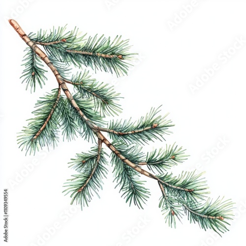 © Kin no Hikari, Obraz premium Pine branch, white isolated background.