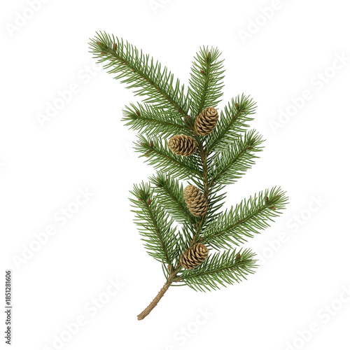 © Saba, Naklejka premium Pine branch with pinecones in natural green color on white background for christmas decoration