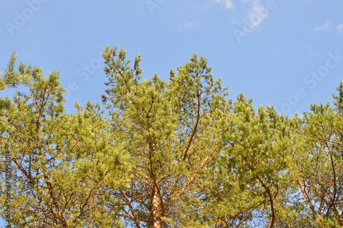 Fototapeta premium Pine branches against sky.