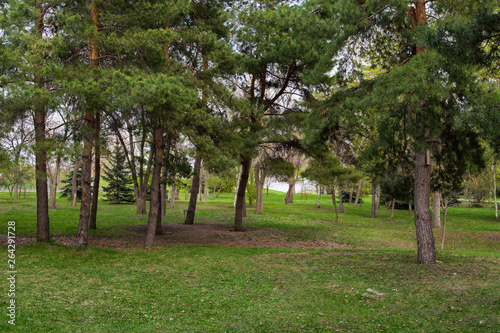 Obraz premium Pine city Park. Park and trees. Walk in the Park.