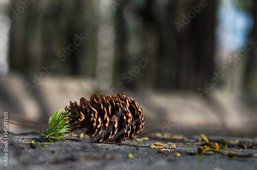 Obraz premium Pine cone closeup on the road