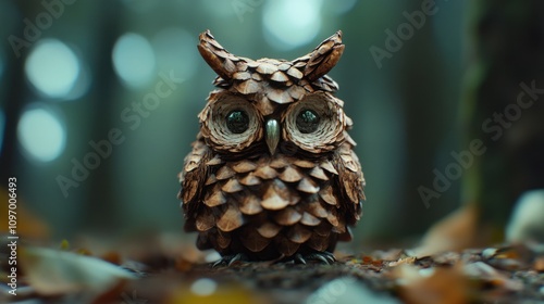 Fototapeta premium Pine Cone Owl in Enchanting Forest