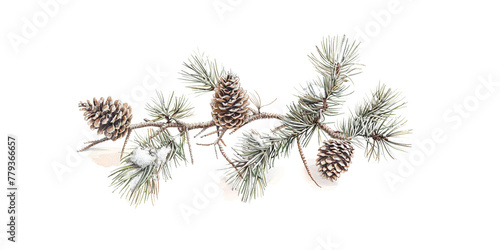 Fototapeta premium Pine cones and pine branches on a white background